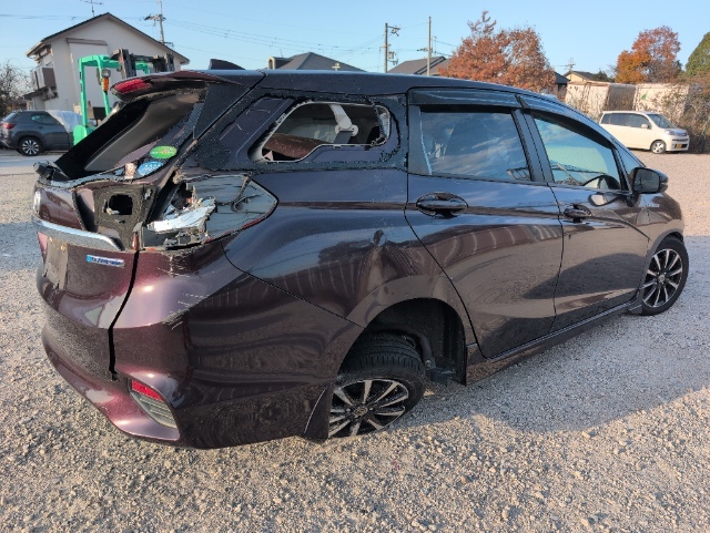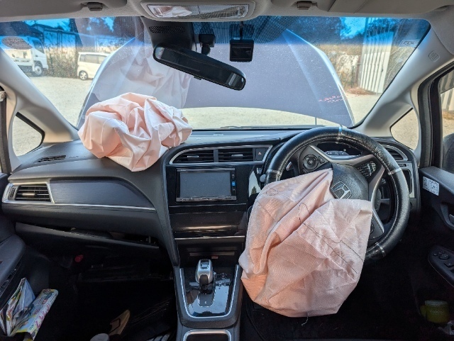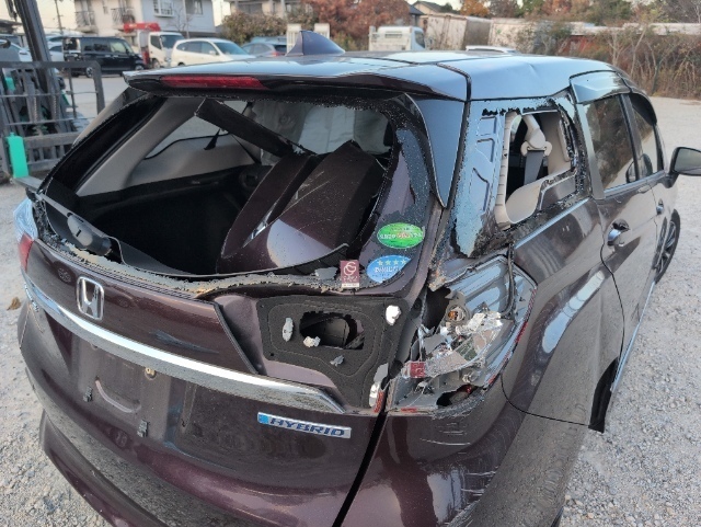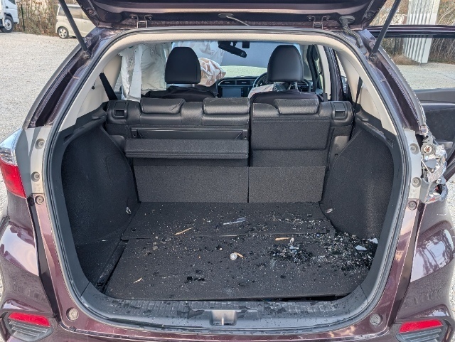 ・車内ガラス散乱。