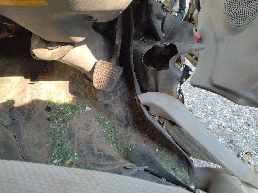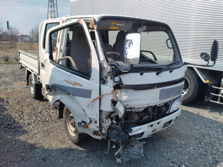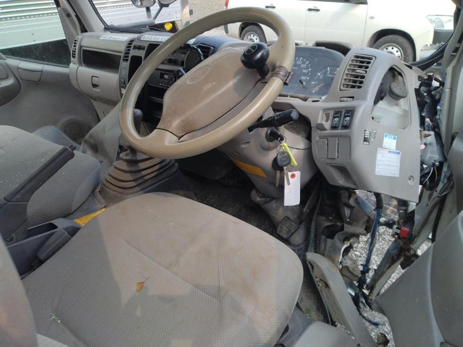 車内雨水侵入有 右後ろタイヤ固着しており転がらない ハンドル効かない(ステアリングシャフト損傷) 全体的に損傷激しい.